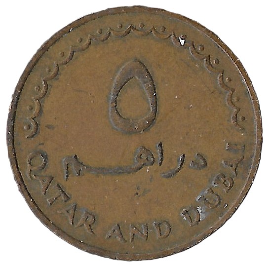 🇶🇦🇦🇪 Qatar and Dubai – 5 Dirhams 1966
