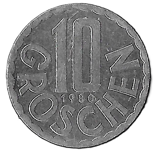 Austria. 1980. 10 Groschen. 1.08g. Aluminium. XF. C554. RI.2