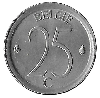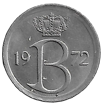 Belgium. 1972. 25 Centimes – Baudouin I Dutch text. 1.82g. Copper-Nickel. XF. C525. RI.4