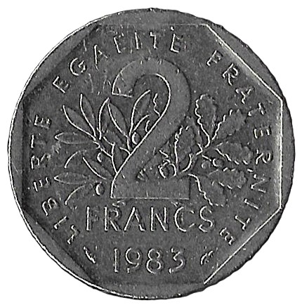 France. 1983. 2 Francs. 7.50g. Nickel. VF. C533. RI.2
