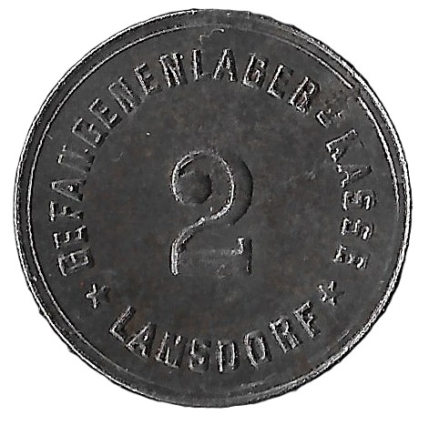 + Free ShippingGermany. 1914. 2 Pfennigs – Lamsdorf Gefangenenlagerkasse. 2.30g. Iron. XF. C560. RI.97