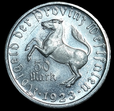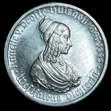 + Free ShippingGGermany. 1923. German Notgeld. Westphalia. 50 Mark – Westfalen Annette v. Droste-Hülshoff. 2.89g. Aluminium. Unc. C701. RI.45