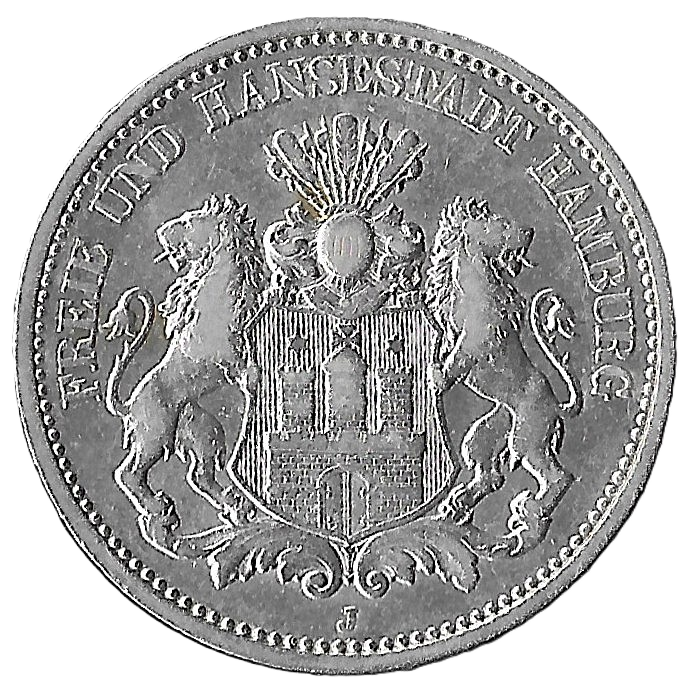 The Hamburg Mint used advanced Gräbener presses, famous for extremely sharp details — that’s why the lions and brickwork are still crisp on well-kept examples today.