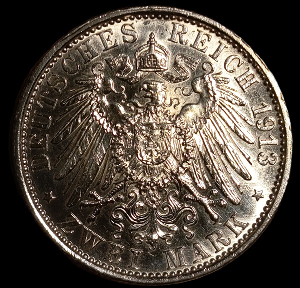 Germany. Prussia. 1913. 2 Marks – William II. 11.11g. Silver .900. Au. C655. RI.15