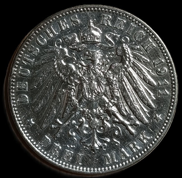 Germany. Saxony. 1911. 3 Mark – Frederick August III. 16.69g. Silver .900. Au. C654. RI.18