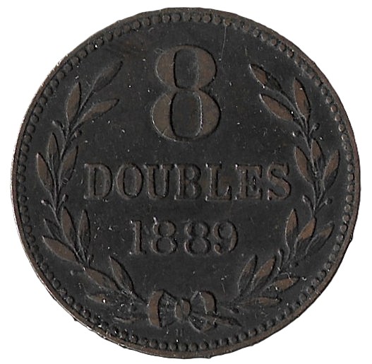 Guernsey. 1889. 8 Doubles. 9.72g. Bronze. XF. C580. RI.7