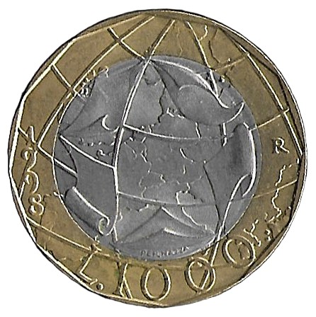 Italy. 1997. 1000 Lire European Union; Old West Germany Map. 8.89g. Bimetallic. Xf. C484. RI.6