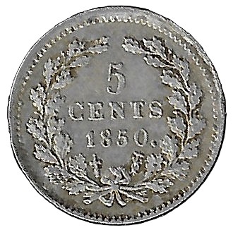 + Free ShippingNetherlands. 1850. 5 Cents – Willem III. Silver (.640). 0.68g. VF. C401. RI.11