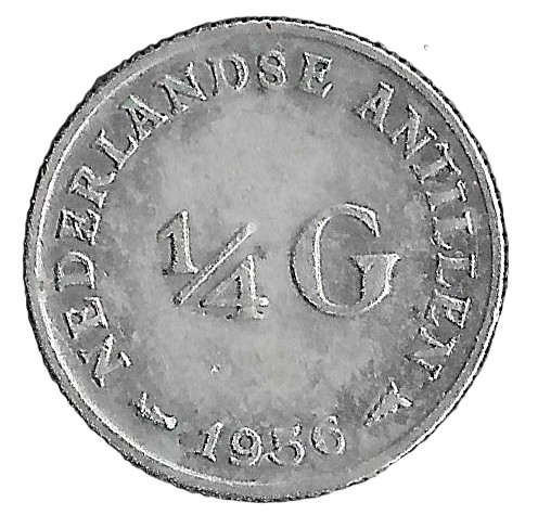 Netherlands Antilles. 1956. ¼ Gulden – Juliana. 3.54g. Silver (.640). VF. C544. RI.8