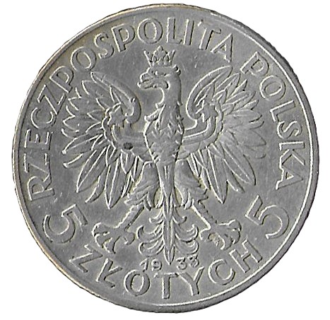 Poland. 1933. 5 Zlotys Polonia. Silver (.750). 11.33g. Au. C399. RI.10