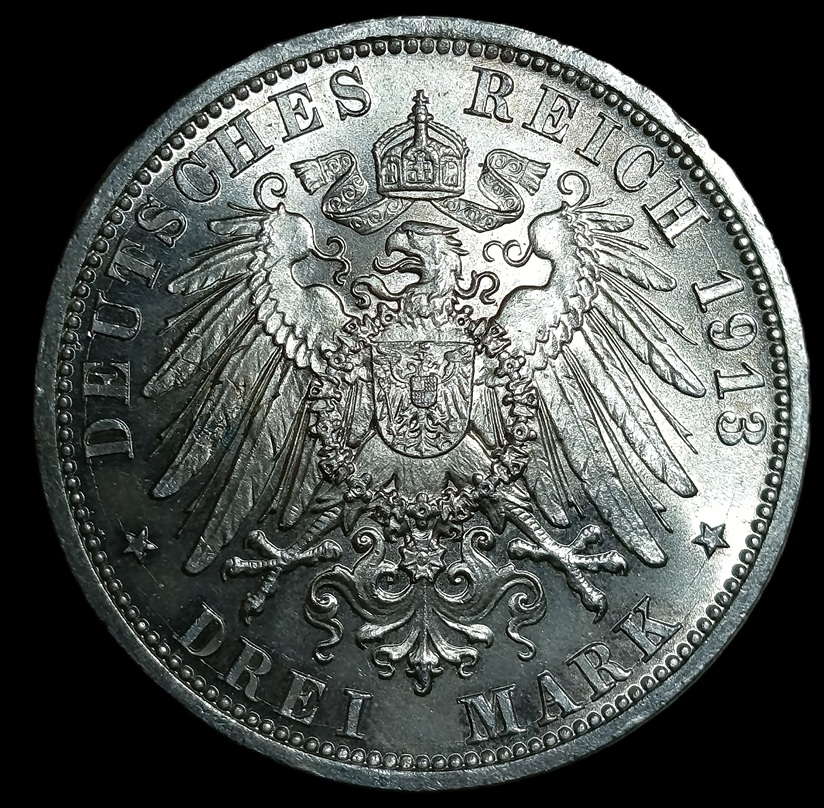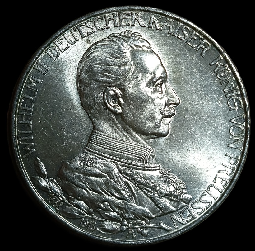 Prussia. 1913. 3 Mark – William II. 16.69g. Silver .900. Au. C639. RI.13