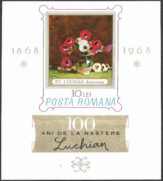 Romania. 1968 The 100th Anniversary of the Birth of Stefan Luchian, 1868-1916. 10L. MNH. Mi Block 66