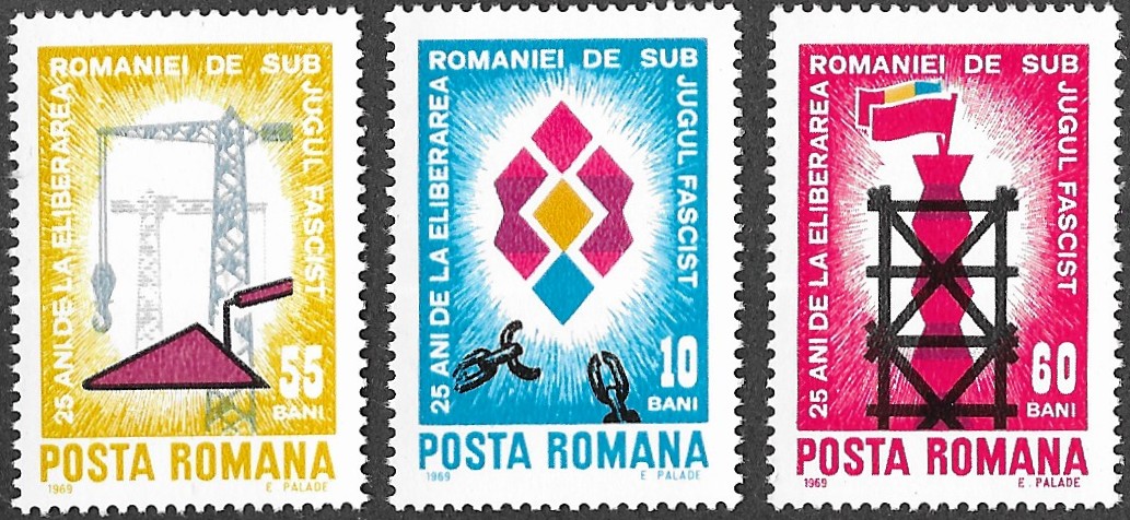 Romania. 1969 The 25th Anniversary of the Defeat of the Fascist Regime. MNH. Mi 2786-2788