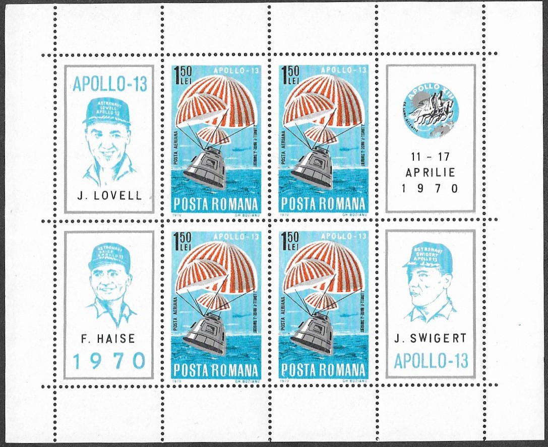 Romania. 1970 Airmail – Apollo 13. MNH. Mi Block77