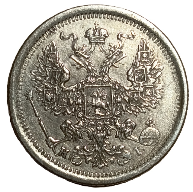Russia. 1875. 20 Kopecks. 3.65g. Silver .500. XF. C638. RI.6