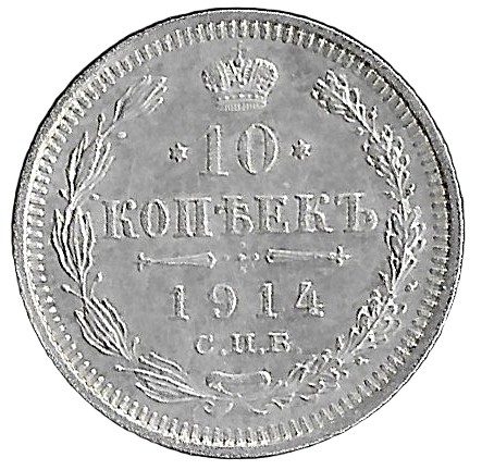 Russia. 1914. 10 Kopecks – Nicholas II. Silver (.500). 1.78g. XF. C391. RI.6