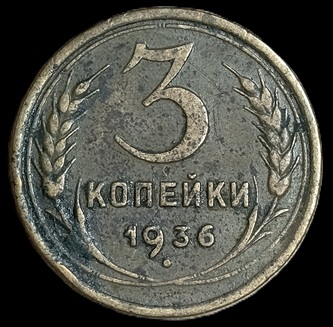 Russia. 1936. 3 Kopecks 7 Ribbons. 2.93g. Aluminium-Bronze. VF. C691. RI.13
