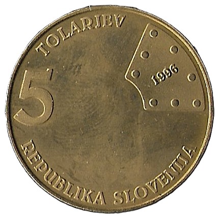 Slovenia. 1996. 5 Tolarjev First railway in Slovenia. 6.38g. Nickel Brass. Au. C573. RI.13
