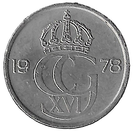 Sweden. 1978. 25 Öre – Carl XVI Gustaf. 2.18g. Copper-Nickel. XF. C551. RI.5