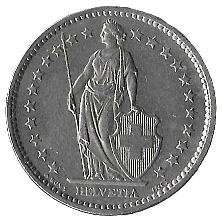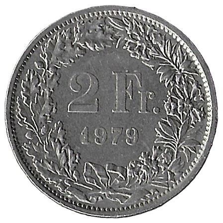 + Free ShippingSwitzerland. 1979. 2 Francs Helvetia standing. 8.74g. Copper-Nickel. XF. C531. RI.3