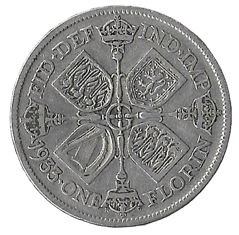 United Kingdom. 1933. 1 Florin – George V 3rd issue. 11.11g. Silver (.500). F. C462. RI.6