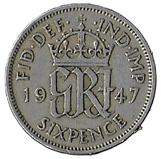 United Kingdom. 1947. 6 Pence – George VI 2nd coinage. 2.77g. Copper-Nickel. VF. C467. RI.4