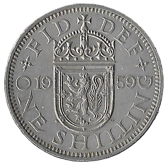 United Kingdom. 1959. 1 Shilling – Elizabeth II Scottish shield. 5.66g. Copper-Nickel. Xf. C602. RI.3